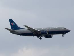 Description: United Airlines 737-300 landing at Indianapolis International Airport. June 26, 2008.
